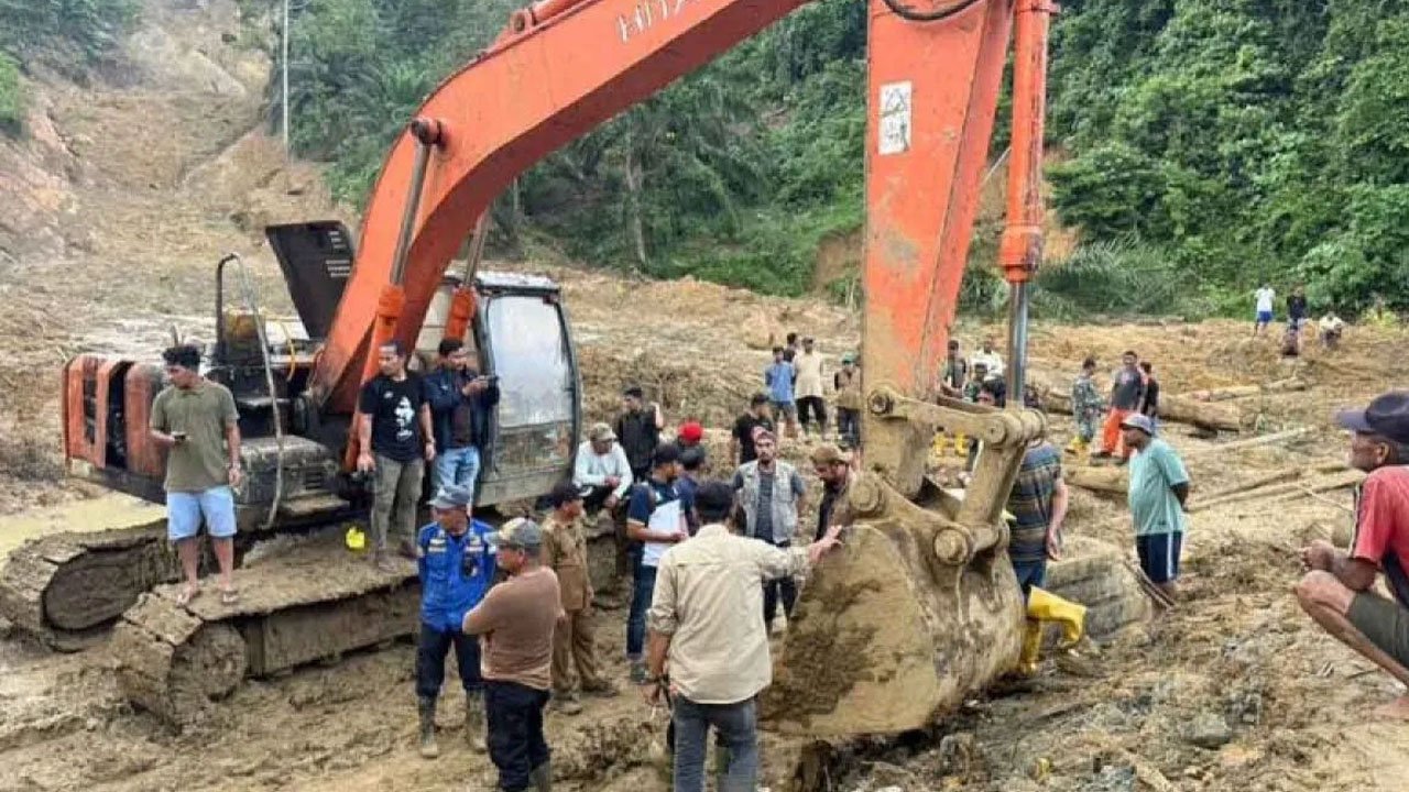 Tim Gabungan: Tim gabungan mengerahkan alat berat (ekskavator) dan personel Zeni TNI untuk membersihkan sisa material banjir.